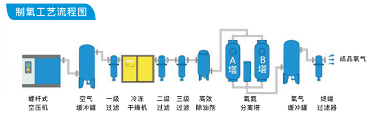 原料空氣要求: 1. 空氣壓力:0.5~1.0MPa 2. 壓力露點:≤10℃ 3. 油含量:≤0.003mg/m³ 4. 空氣流量:根據制氧機要求 |